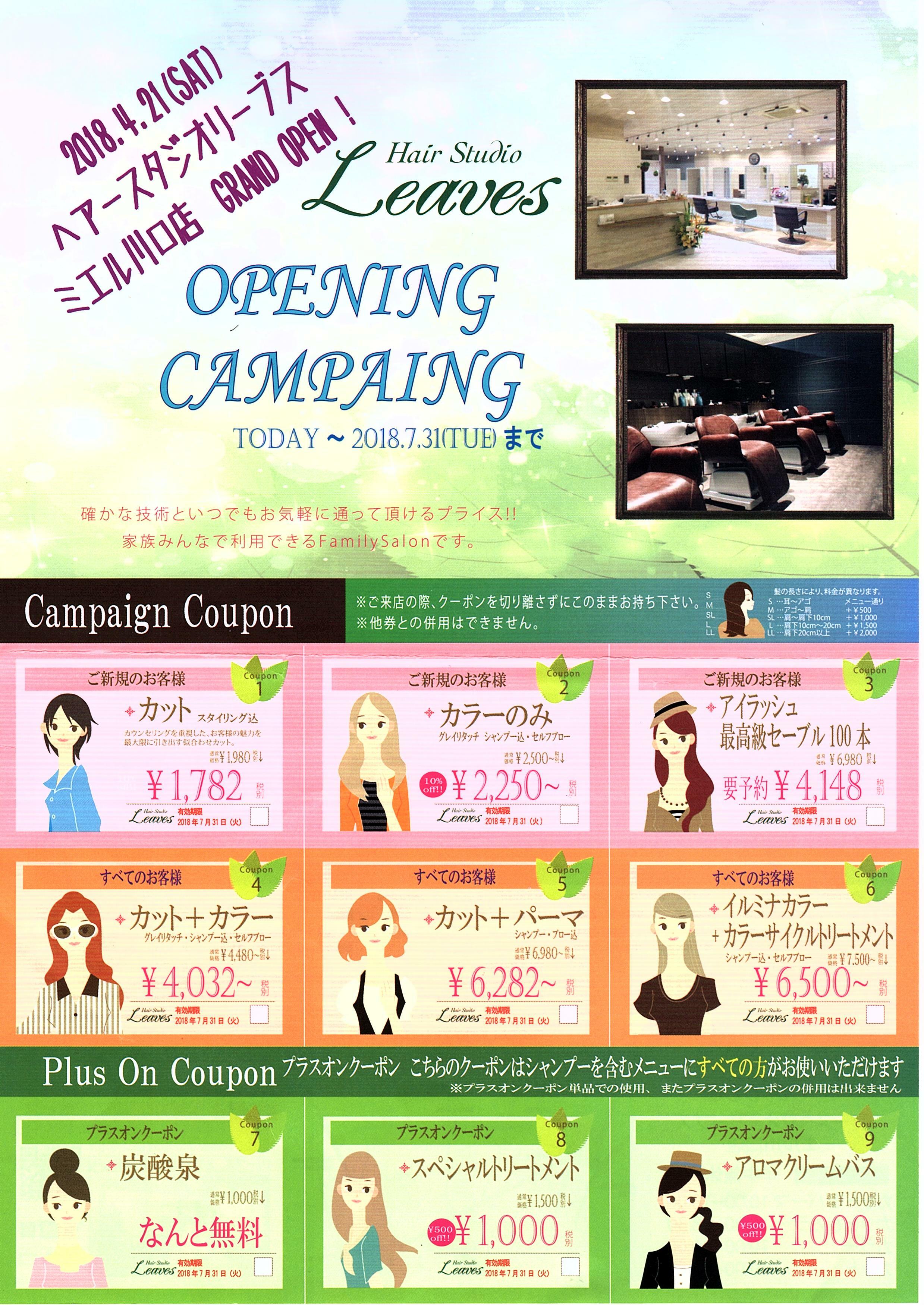 ミエル川口 美容室 リーブス 「オープニングキャンペーン」