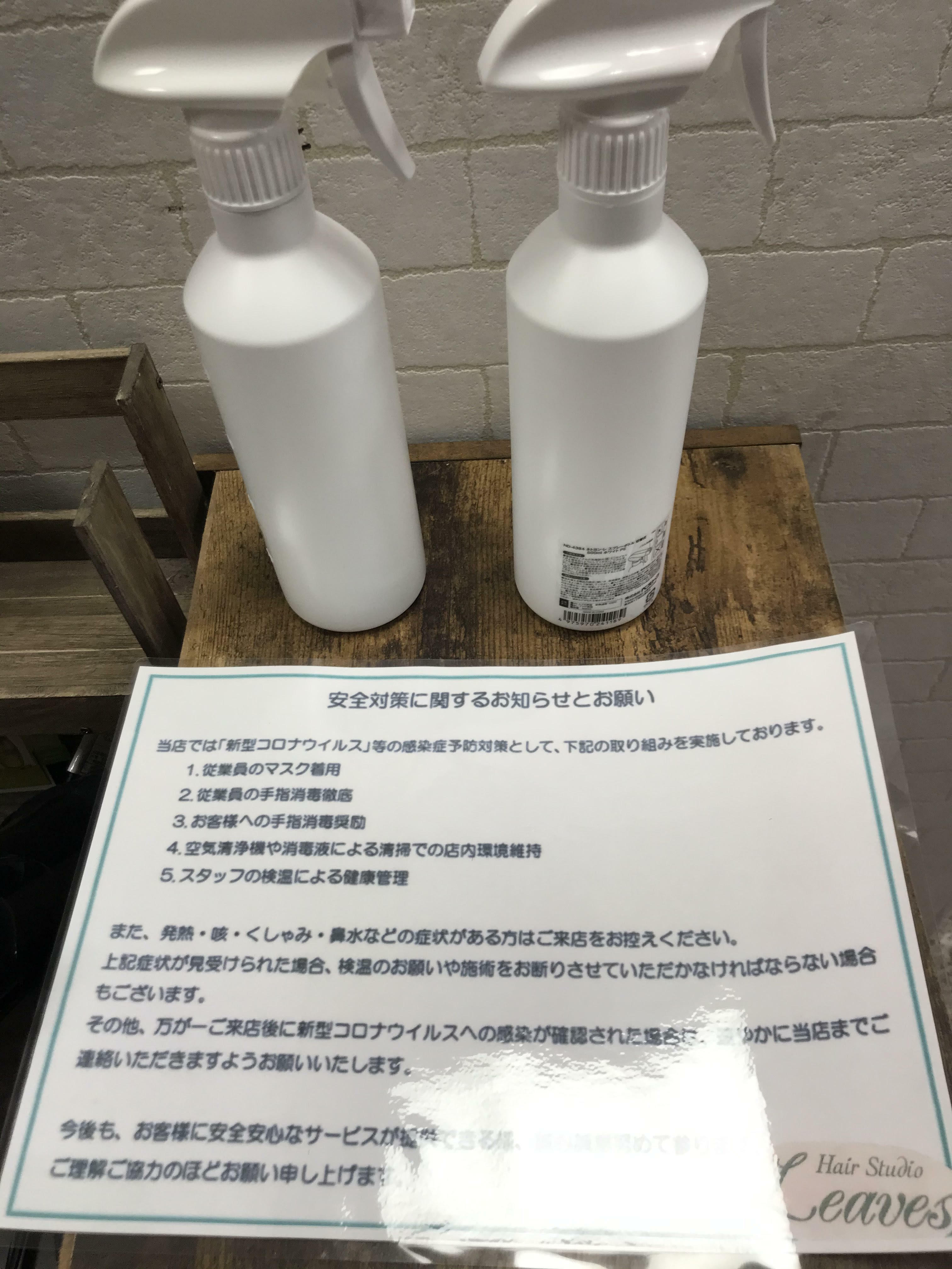 原山 美容室リーブス 安全対策に関するお知らせとお願い