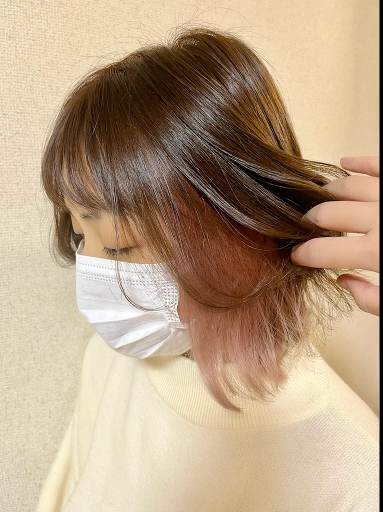 今回は秋らしく、くすみピンクカラーを入れたインナーカラーです!