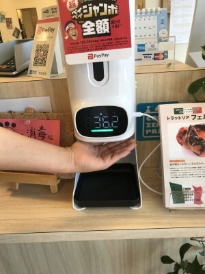 さて当店に新しく設置された検温器&消毒器をご紹介します(^_-)-☆
