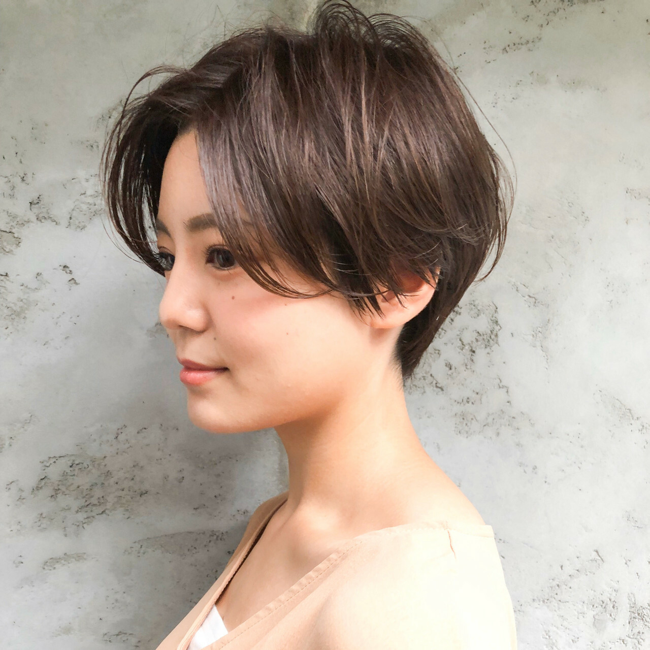 前髪長めのこなれショートヘア。後頭部の髪は短めにしてコンパクトな印象だけど、長めの前髪のおかげで女らしさもあるニュアンススタイル。襟足や耳周りはスッキリさせて、長めの前髪の対比でメリハリのあるスタイルになります!😊