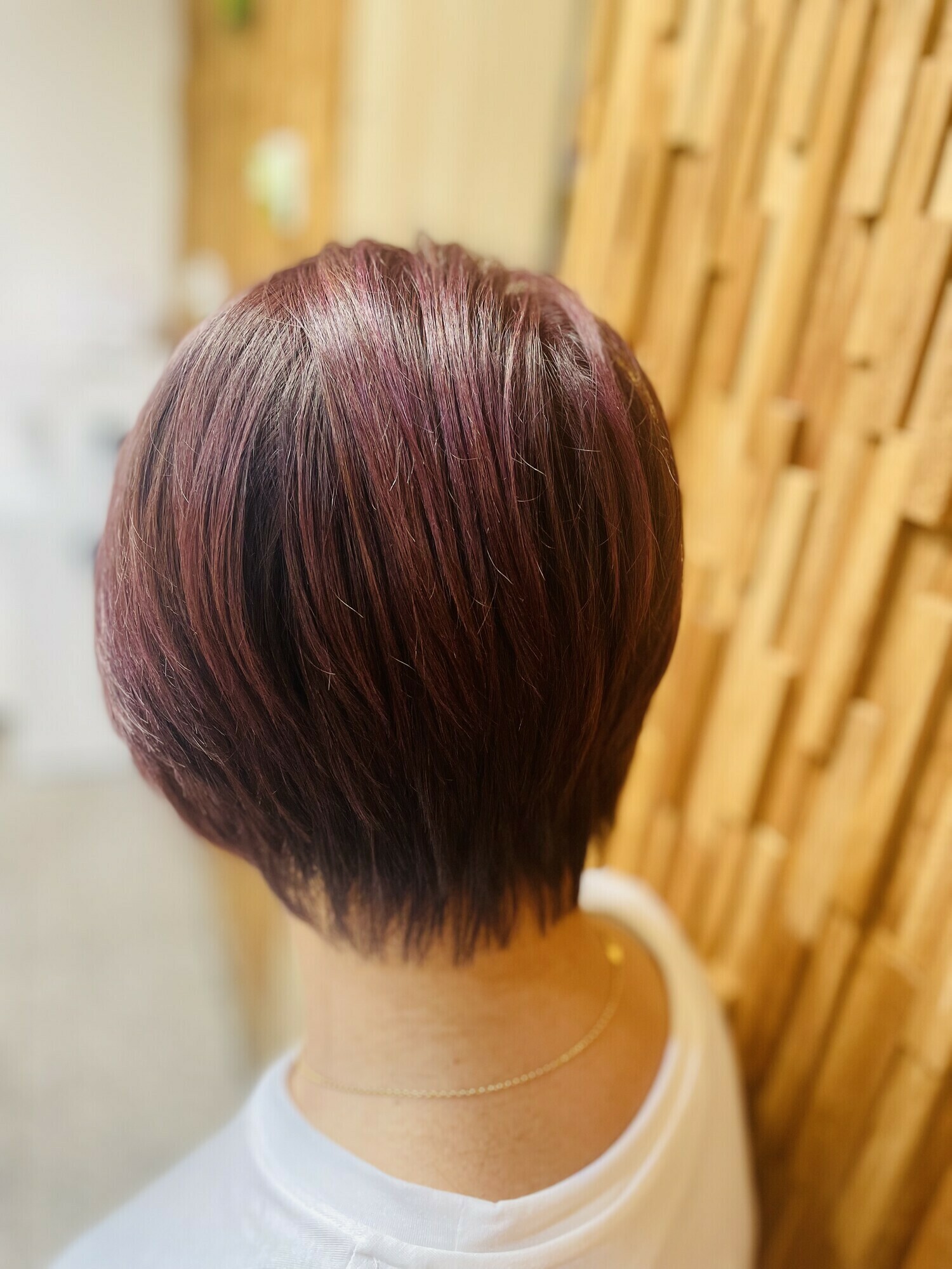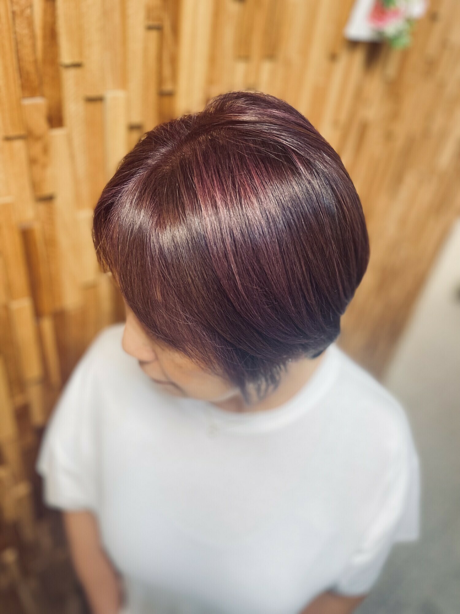表面にハイライト入れてオンカラーでイルミナカラーのサンセットで染めました。