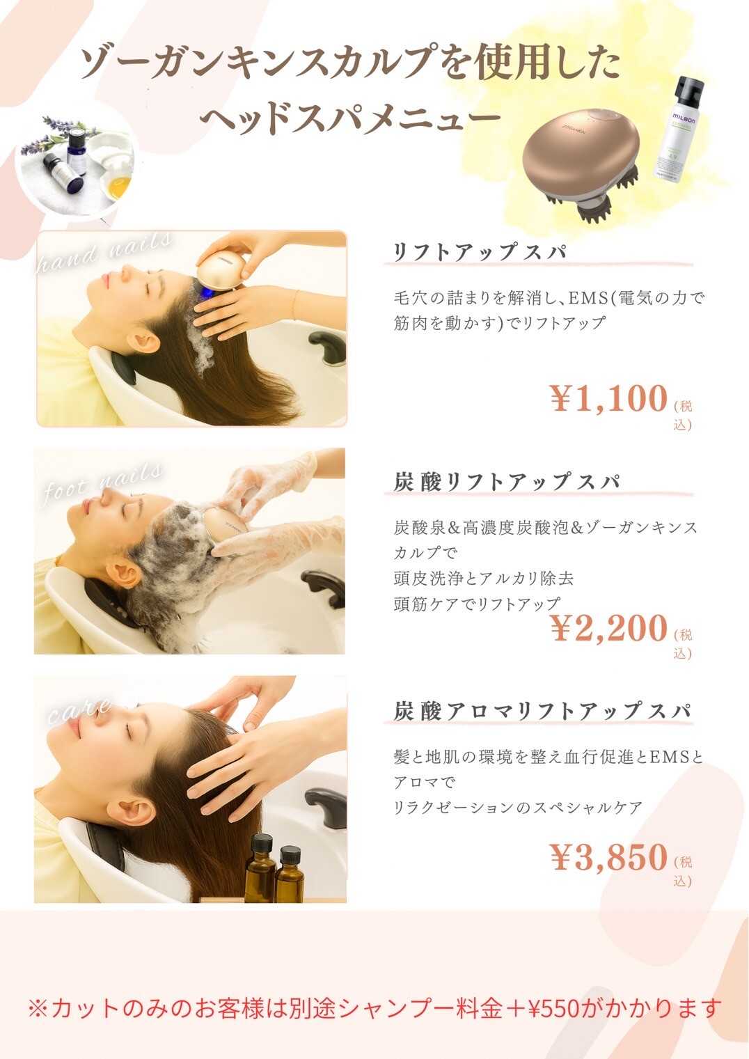 頭皮環境を整えられるリラクゼーションスパとなりますので、是非ご来店の際はお試しいただければと思います!