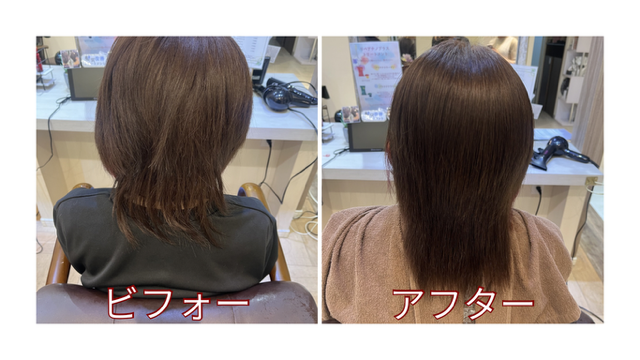 広がりやうねりが気になる髪もやわらかく自然なストレートに仕上がり