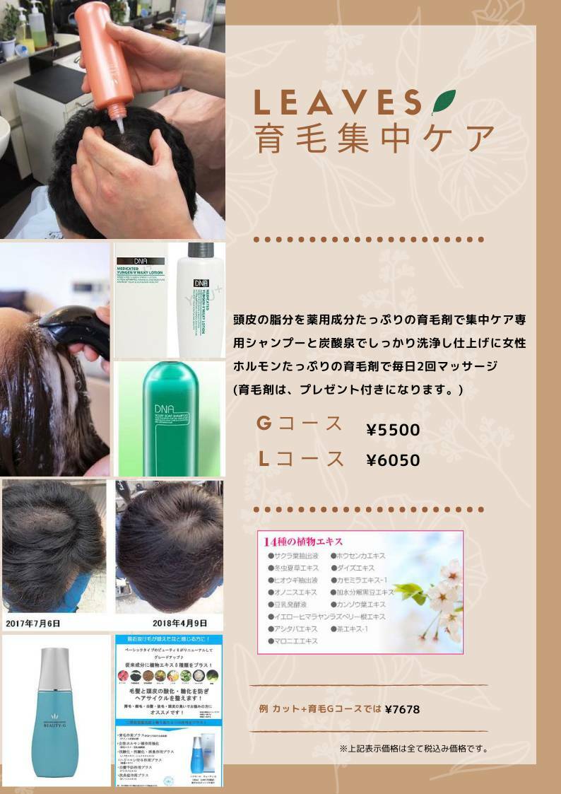 Leavesでは、育毛キャンペーンをやっています!