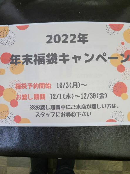 本日10月3日より年末福袋キャンペーンのご予約を開始します。
