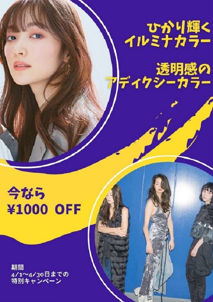 ファッションカラーのアディクシーとイルミナが1000円引きで施術できます!!